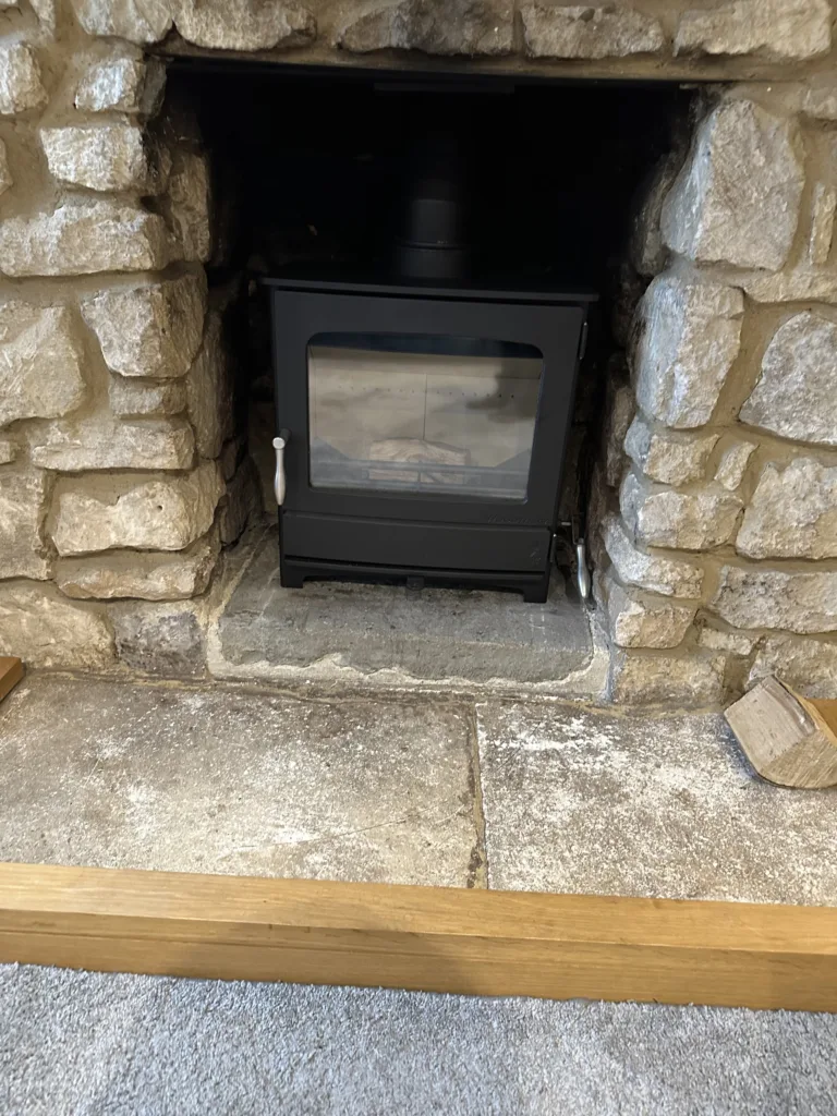 The woodwarm Fireview range has been super popular, this particular version the Traditional with stainless teardrop handle. Installed in the existing stove fireplaced replacing an old inefficient Stovax Stockton stove.